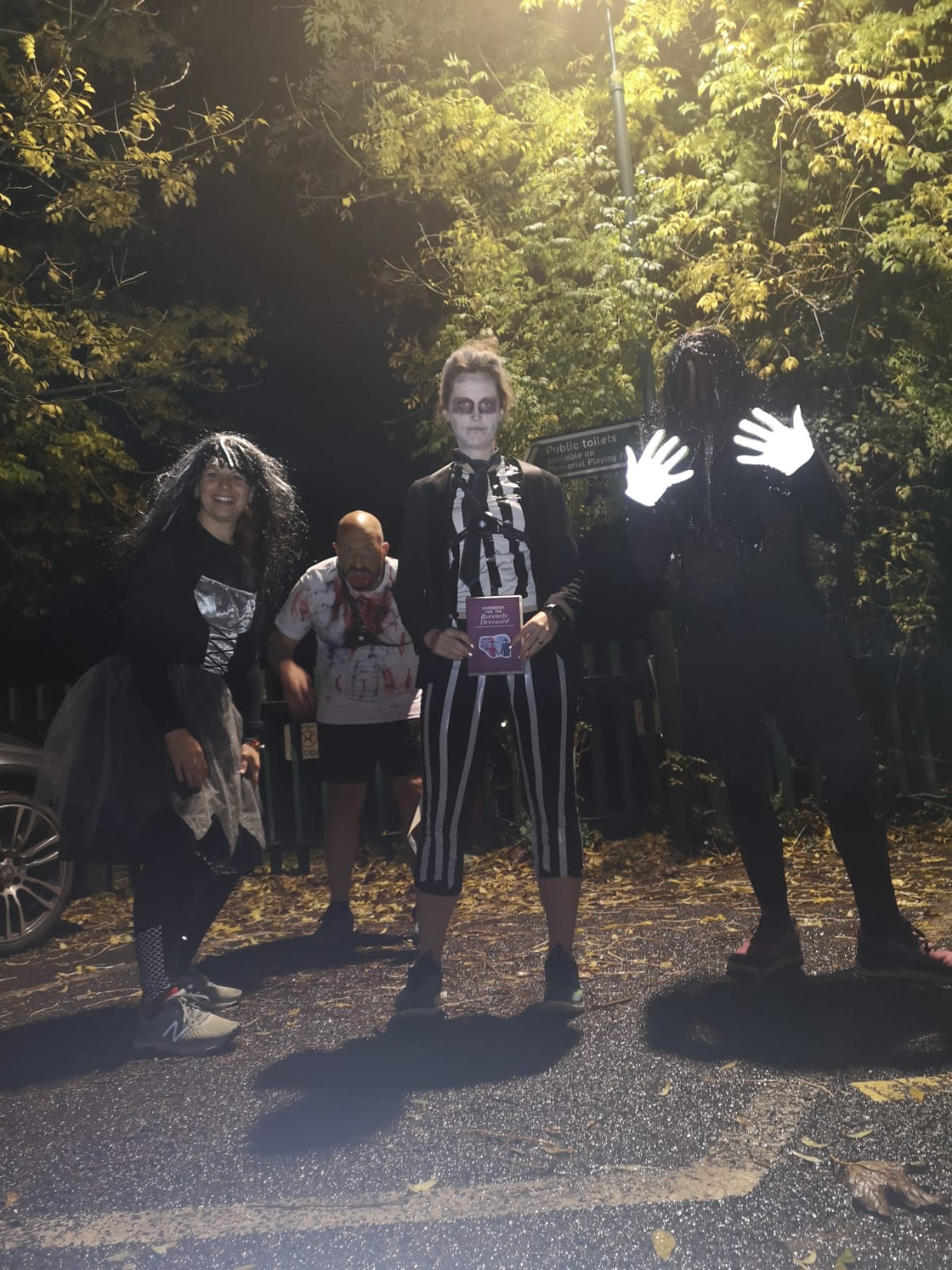 Even if you didn’t turn up in fancy-dress it didn’t matter as Bea had set out a course around Chartham village hunting for hidden pumpkins and skulls, each with a task attached, be it 5 star-jumps or 10 squats for example, and an instruction for where to find the next clue.
